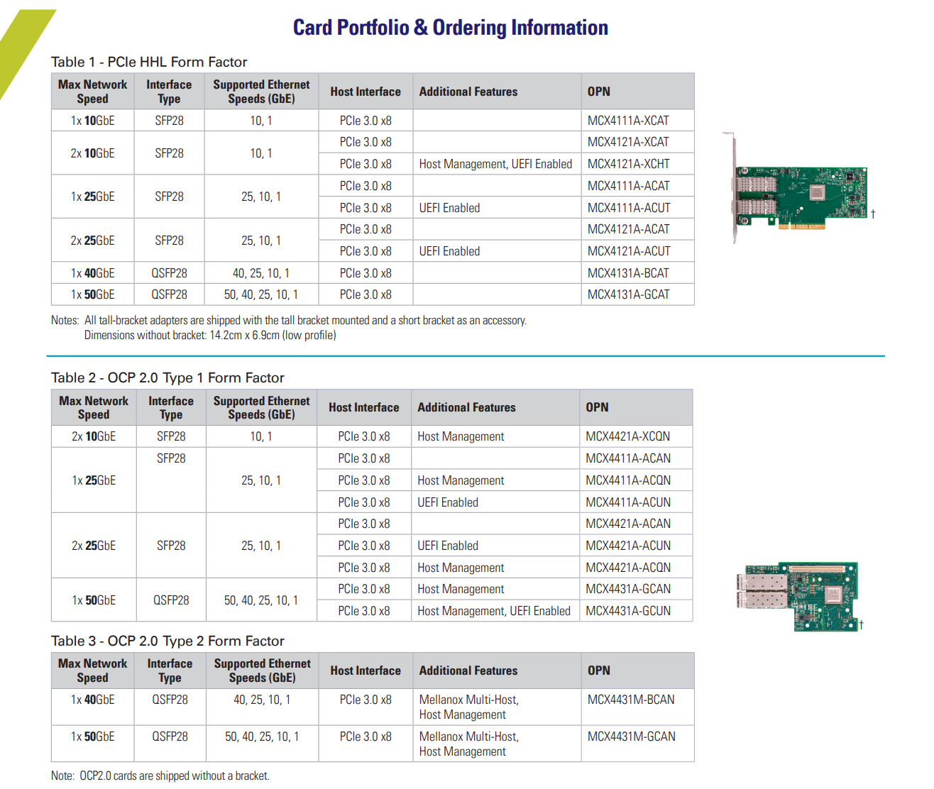 ConnectX-4 Lx EN 适配器卡提供 1、10、25 和 40 GbE 带宽、亚微秒延迟和每秒 7500 万包消息速率的组合。它们包括通过融合以太网 (RoCE)、以太网无状态卸载引擎、叠加网络、GPUDirect 技术和多主机技术为 RDMA 提供本地硬件支持。